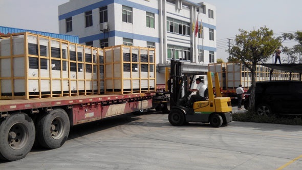 我公司8台高温热泵机组16年5月15日顺利出厂,发往广东中山。该客户地址位于中山火炬高新技术开发区,是一家从事通讯用端子、半导体IC导线架、PC机连接器端子及外壳、汽车用端子等高精密电子零组件与高精密模具之电镀及开发的高新技术企业。因工厂整体性节能改造和产业升级的要求极为迫切,一条年产值10亿的电镀生产线耗电180万元,能源电费占总成本10%以上。高温电镀热泵是一种高效节能的加热恒温设备,根据这条产线工艺要示设计8台高温热泵机组,设备调试运行后,年耗电预计每条产线从180万元降至80万,单位产值电耗比降50%~80%,占同行业领先水平,同时提高产品竞争力,这项目对于电镀企业长期可持续发展具有重要意义。。